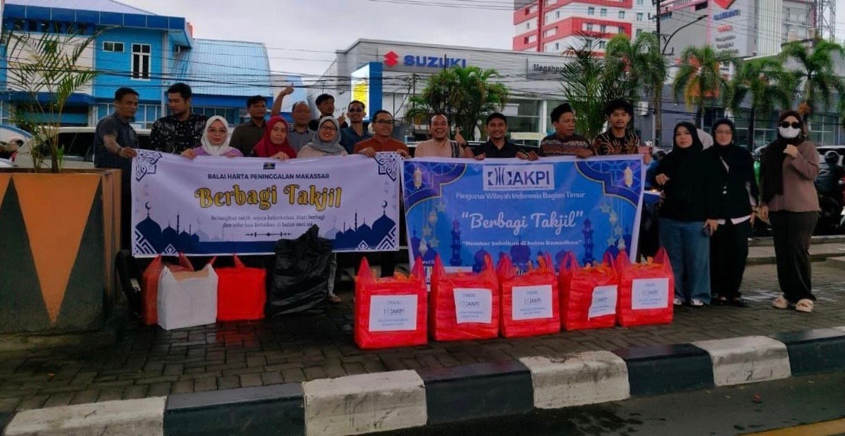 Makassar — Dalam semangat berbagi di bulan suci Ramadan, Pengurus Wilayah Indonesia Timur dari Asosiasi Kurator dan Pengurus Indonesia (AKPI) bersama Balai Harta Peninggalan Makassar (BHP Makassar) melaksanakan kegiatan sosial berupa pembagian takjil kepada para pengguna jalan.