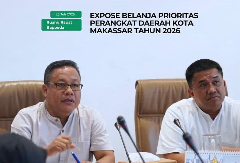 Makassar, 26 Juli 2025 – Badan Perencanaan Pembangunan Daerah (Bappeda) Kota Makassar menggelar rapat expose belanja prioritas perangkat daerah Kota Makassar Tahun Anggaran 2026. Rapat yang berlangsung di ruang rapat Bappeda ini dihadiri oleh Kepala Bappeda, Sekretaris Bappeda, para pejabat fungsional Bappeda, dan tim ahli Wali Kota Makassar.