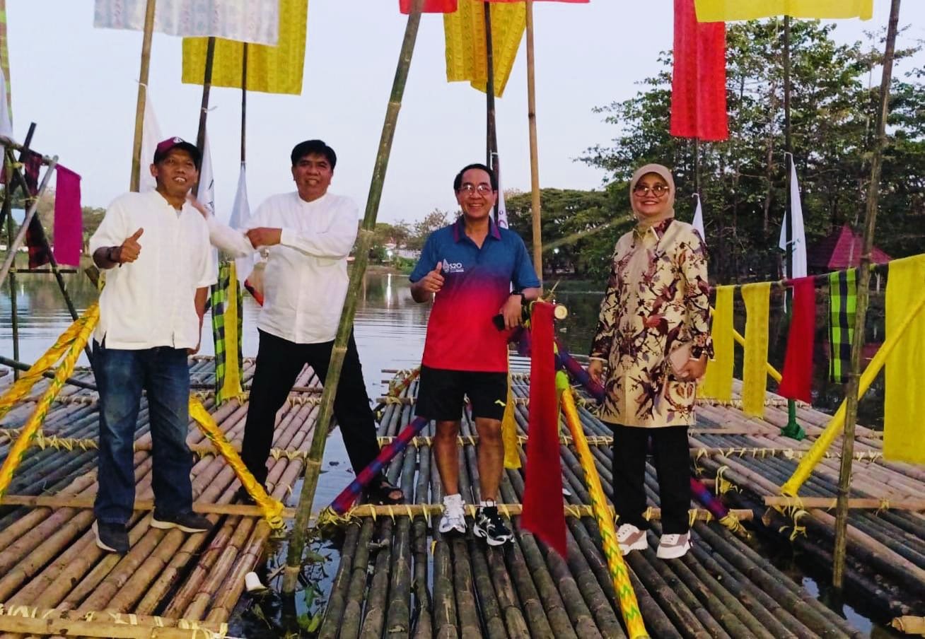 Rektor naik ke rakit bersama Prof Ucu dan Salahuddin Alam. Ia memeriksa beberapa ikatan rakit. “Kuat ini ya,” kata rektor. “Iye kuat,” jawab Prof Ucu.