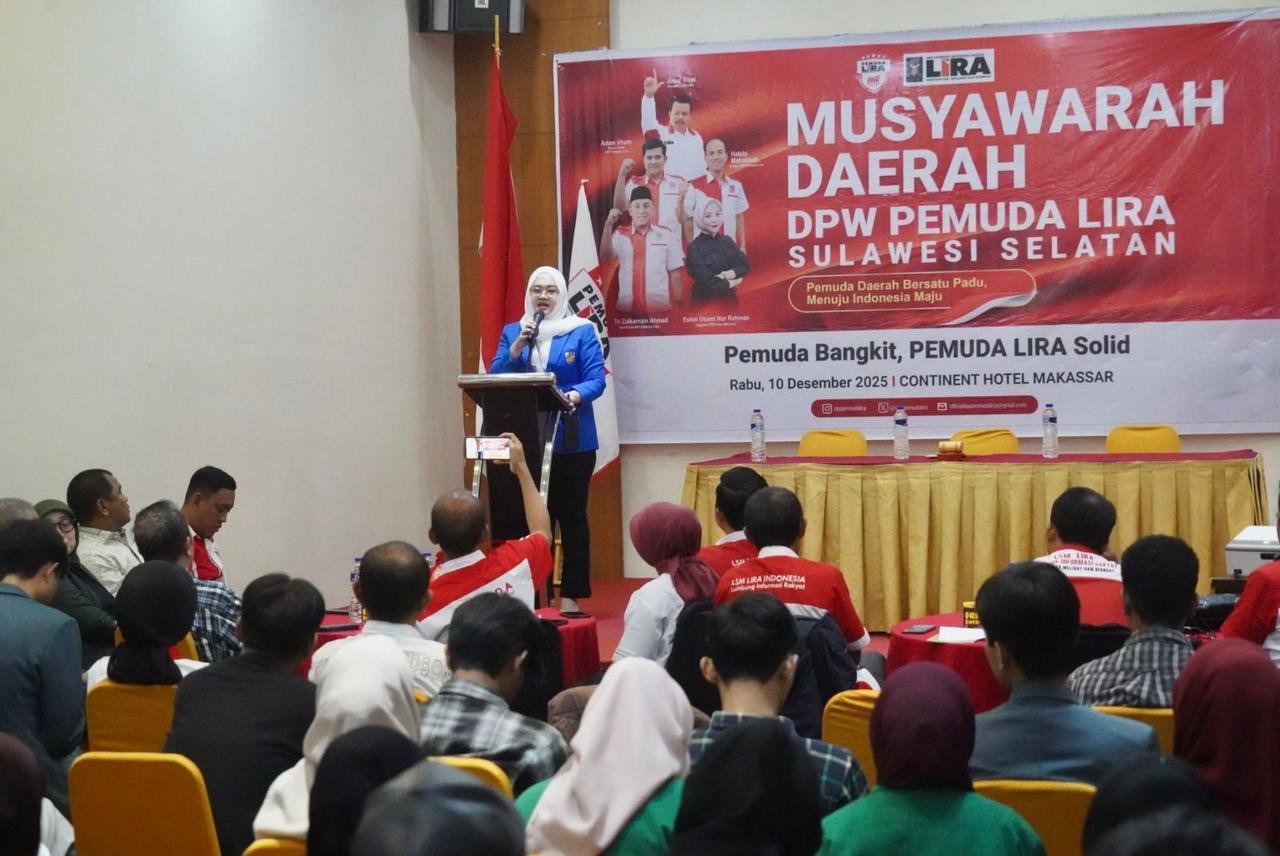 Ecy, sapaan Eshin Usami langsung dikukuhkan oleh Ketua Umum DPP LIRA Adam Irham usai terpilih dalam Musyawarah Daerah Pemuda LIRA di Hotel Continent Makassar, Rabu 10 Desember 2025.
