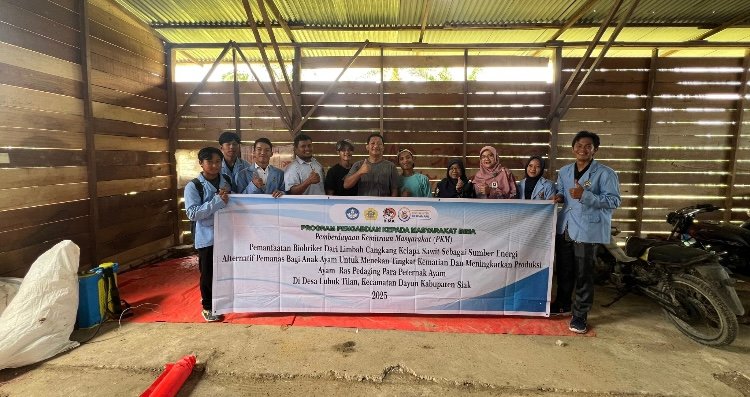 Siak – Tim dosen dan mahasiswa Politeknik Negeri Sriwijaya (Polsri) Kampus Kabupaten Siak melaksanakan program Pengabdian kepada Masyarakat (PKM) yang inovatif, yaitu pemanfaatan limbah cangkang kelapa sawit menjadi biobriket sebagai sumber energi alternatif untuk pemanas kandang ayam broiler (ayam ras pedaging). Program ini dijalankan di Desa Lubuk Tilan, Kecamatan Dayun, Kabupaten Siak, bekerja sama dengan peternakan ayam milik Bapak Joko Susilo yang memiliki kapasitas kandang mencapai 20.000 ekor ayam.