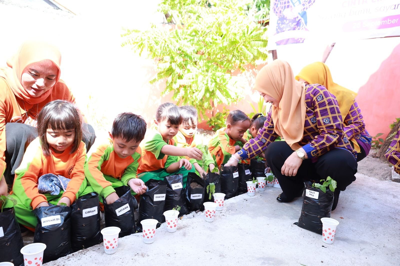 “Anak-anak ini jangan hanya di sekolah saja, di rumah juga kita lanjutkan untuk diajar, diajak untuk bagaimana mencintai lingkungan dengan rajin menanam,” ungkapnya.