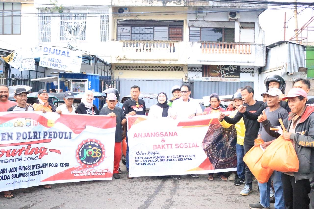 Makassar – Dalam rangka memperingati Hari Ulang Tahun (HUT) Intelijen Polri ke-80 Tahun 2026, Direktorat Intelkam Polda Sulawesi Selatan melaksanakan kegiatan bakti sosial berupa pembagian paket sembako kepada tukang bentor dan warga di sekitar Pasar Pabaengbaeng, Jl. Sultan Alauddin, Kecamatan Tamalate, Kota Makassar.