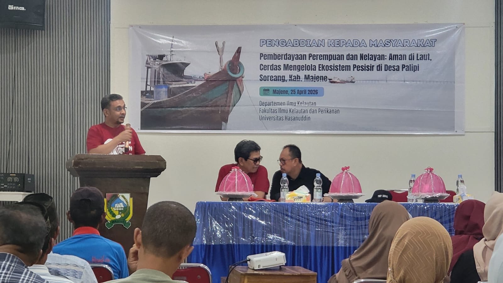 MAKASSAR,-Departemen Ilmu Kelautan Universitas Hasanuddin menggelar kegiatan pengabdian kepada masyarakat di Desa Palipi Soreang Kabupaten Majene, Sabtu (25/4). Kegiatan bertajuk “Pemberdayaan Perempuan dan Nelayan: Aman di Laut, Cerdas Mengelola Ekosistem Pesisir” ini menghadirkan tidak kurang dari 20-an orang dosen, staf dan mahasiswa pascasarjana Departemen Ilmu Kelautan Unhas.