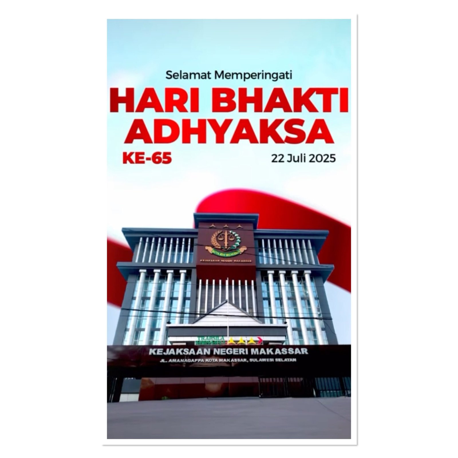 Ucapan selamat dari Bapak Dahyal mewakili Pemerintah Kota Makassar, yang turut menghargai peran penting Kejaksaan dalam menjaga stabilitas dan kepastian hukum di Indonesia, khususnya dalam mendukung program pembangunan di Kota Makassar. Semoga Kejaksaan Republik Indonesia terus jaya dan semakin sukses dalam menjalankan tugas dan fungsinya.