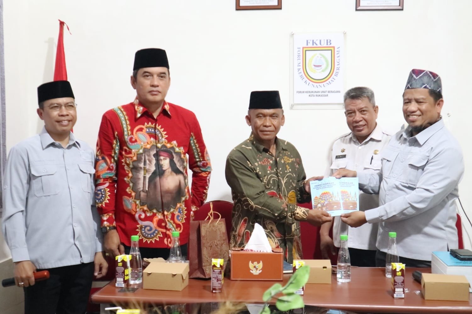 MAKASSAR-SulSel, Ketua Forum Kerukunan Umat Beragama (FKUB) Kota Makassar Prof. H. Arifuddin Ahmad didampingi Sekretaris Dr. H. Usman Sofian dan jajaran pengurus menerima kunjungan Pengurus Forum Kerukunan Umat Beragama Kabupaten Bantaeng di Sekretariat FKUB Makassar Jl. Teduh Bersinar Komp. Griya Fajar Mas, Rabu 19 November 2025.