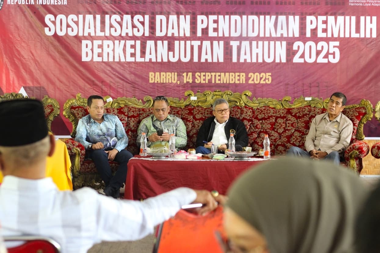 Barru – Komisi Pemilihan Umum Republik Indonesia (KPU RI) menggelar Sosialisasi dan Pendidikan Pemilih Berkelanjutan di Kabupaten Barru, yang digelar di Rumah Makan Kampung Bugis Jaasyira Kabupaten Barru, Minggu 14 September 2025.