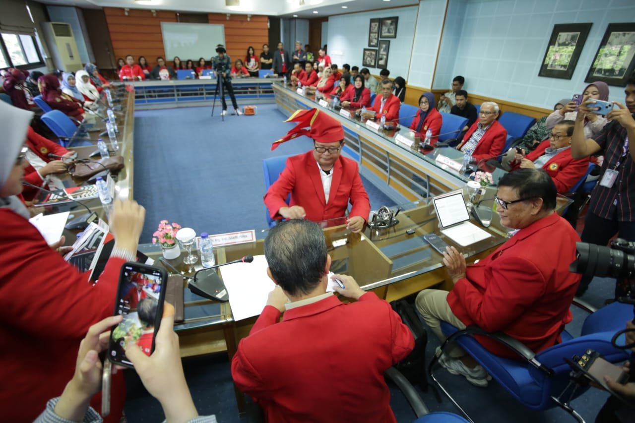 MAKASSAR – Suasana pendaftaran calon Rektor Universitas Hasanuddin (Unhas) periode 2026–2030 pada Kamis (28/8/2025) berlangsung meriah. Dr. Marhaen Hardjo, M. Biomed., Ph.D, yang dikenal sebagai dokter ahli stemcell, tampil berbeda saat resmi mendaftarkan diri di Gedung Rektorat Lantai 4 Unhas.