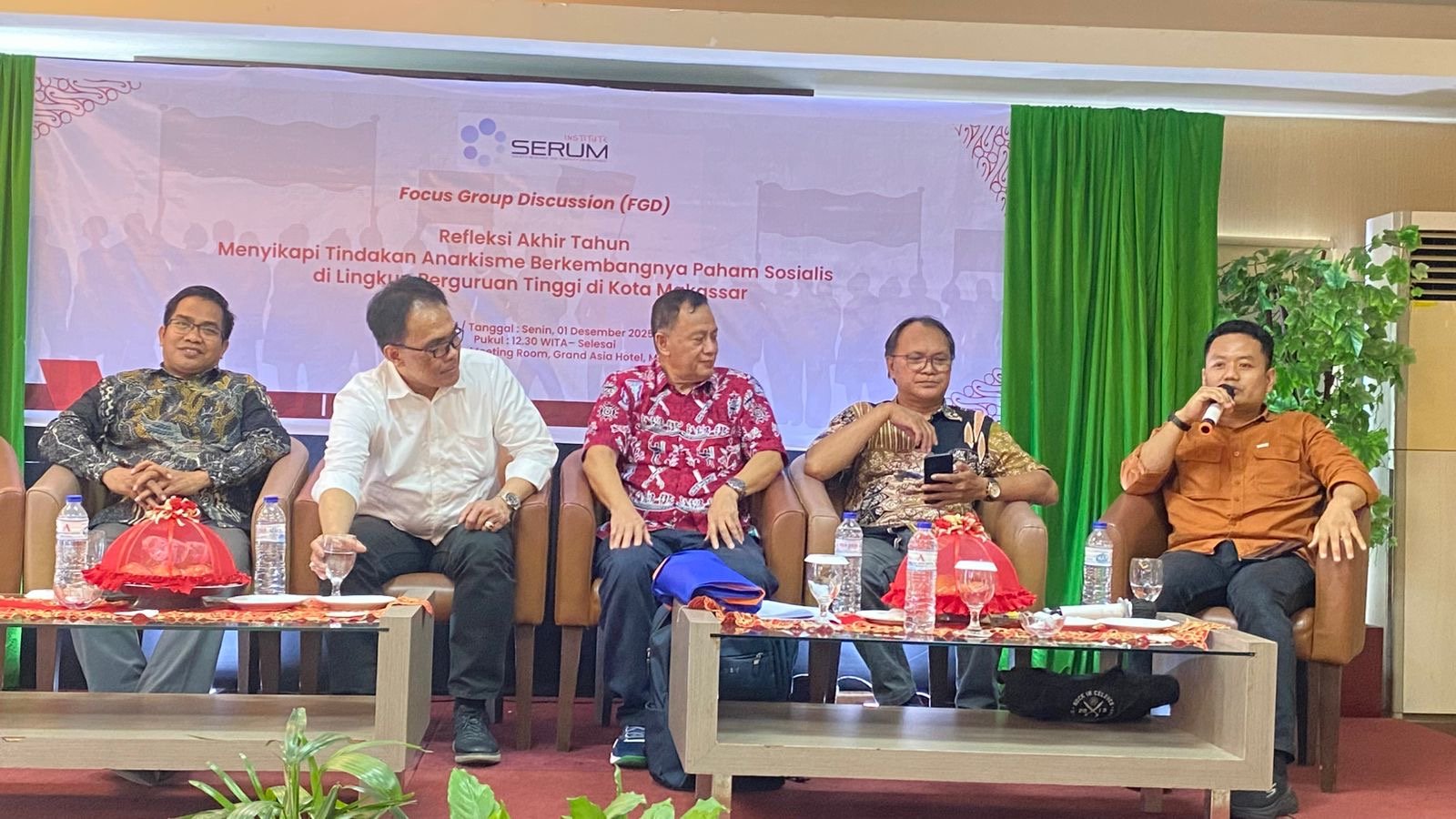 Makassar, 1 Desember 2025 – Seruan untuk menjaga kampus sebagai ruang intelektual murni mengemuka dalam Focus Group Discussion (FGD) yang digelar oleh SERUM INSTITUTE, Senin (1/12/2025). Acara bertema “Refleksi Akhir Tahun: Berkembangnya Paham Sosialis di Kampus di Kota Makassar” tersebut diselenggarakan di Hotel Grand Asia Boulevard Makassar dan menghadirkan sejumlah akademisi serta pemerhati pendidikan.