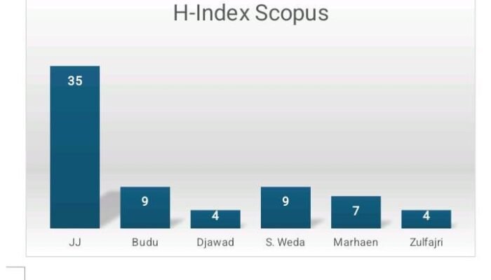 Sedangkan dr. Marhaen Hardjo mencatat H-indeks 7, sementara Prof. Iqbal Djawad dan Dr. Zulfajri masing-masing memiliki H-indeks 4.