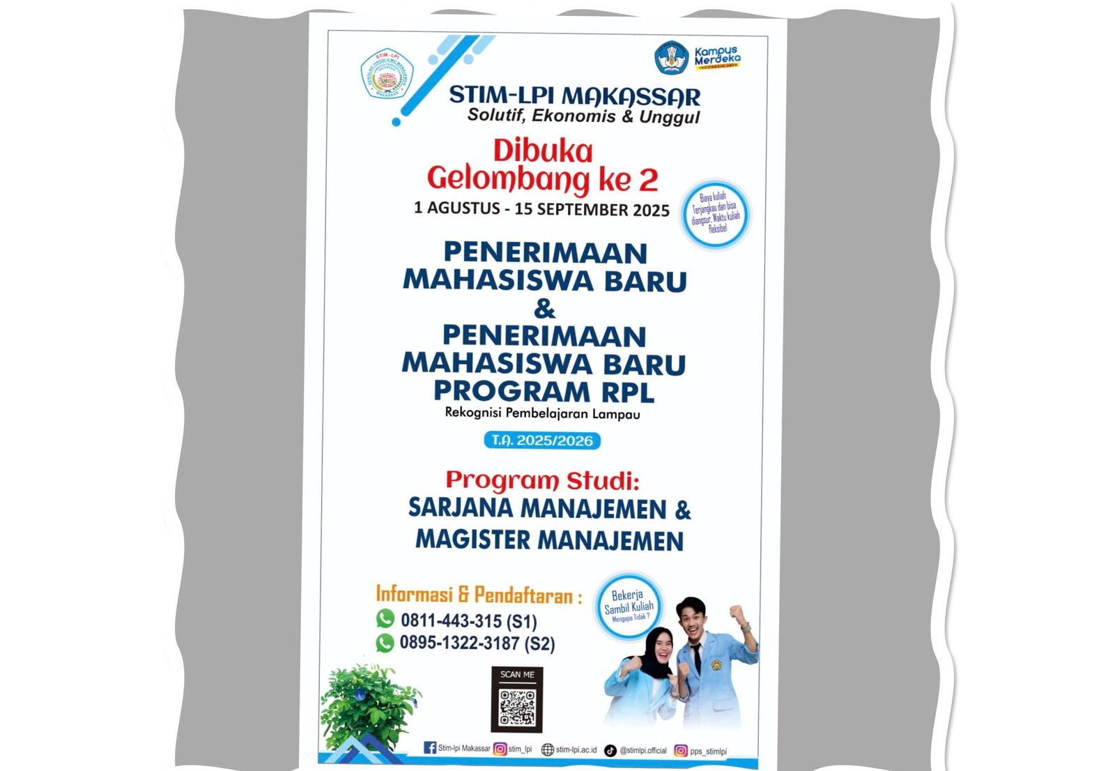 Makassar — STIM LPI Makassar kini resmi membuka Program Rekognisi Pembelajaran Lampau (RPL) khusus untuk Program Studi S1 Manajemen yang telah terakreditasi Baik Sekali. Program ini memberikan pengakuan atas pengalaman kerja, pelatihan, dan pendidikan non-formal yang telah dimiliki calon mahasiswa.