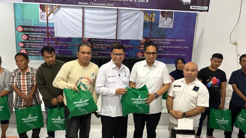 MEDAN, SUMATERA UTARA — Selepas menuntaskan agenda kemanusiaan di Aceh, Kepala Badan POM RI, Prof. dr. Taruna Ikrar, M.Biomed., Ph.D., melanjutkan perjalanan ke Medan untuk melihat langsung kondisi masyarakat yang terdampak banjir besar di sejumlah wilayah. Taruna menegaskan bahwa kedatangannya bukan hanya sebagai Kepala BPOM, tetapi sebagai saudara sebangsa yang memastikan negara hadir bagi rakyat di tengah situasi darurat.