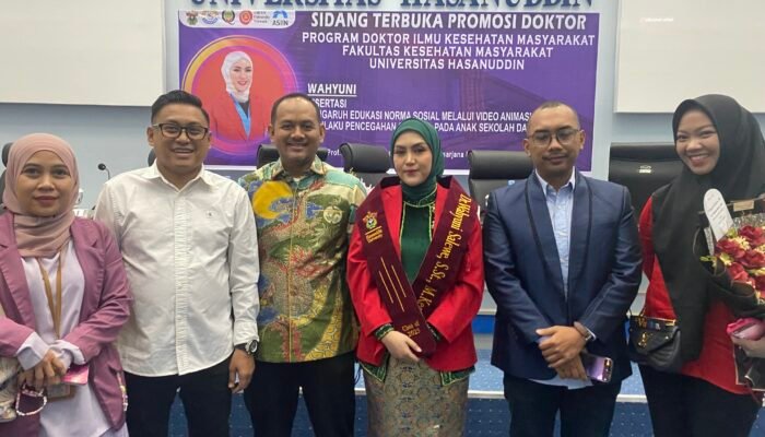 Makassar, 23 September 2025 – Wahyuni, kelahiran Lalatang kabupaten bone, mencatatkan namanya sebagai Doktor Ilmu Kesehatan Masyarakat dari Fakultas Kesehatan Masyarakat Universitas Hasanuddin (Unhas) dengan predikat Sangat Memuaskan. Pencapaian gemilang ini diraih setelah ia sukses mempertahankan disertasinya dalam Sidang Promosi Terbuka yang berlangsung khidmat di Aula Prof Fachruddin Unhas.