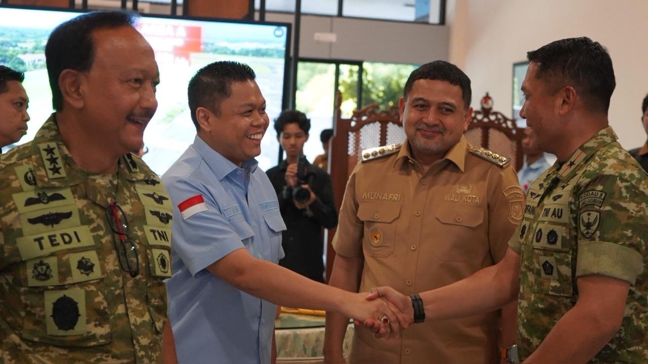 MAROS, Sulsel – Wakil Ketua DPRD Sulawesi Selatan Yasir Machmud dan Wali Kota Makassar Munafri Arifuddin bersama-sama memimpin penyambutan langsung Menteri Pertahanan Republik Indonesia (Menhan RI) Letjen TNI (Purn.) Sjafrie Sjamsoeddin dan Wakil Panglima TNI Jenderal Tandyo Budi Revita di Base Ops Lanud Sultan Hasanuddin, Kabupaten Maros, Senin (8/12/2025).